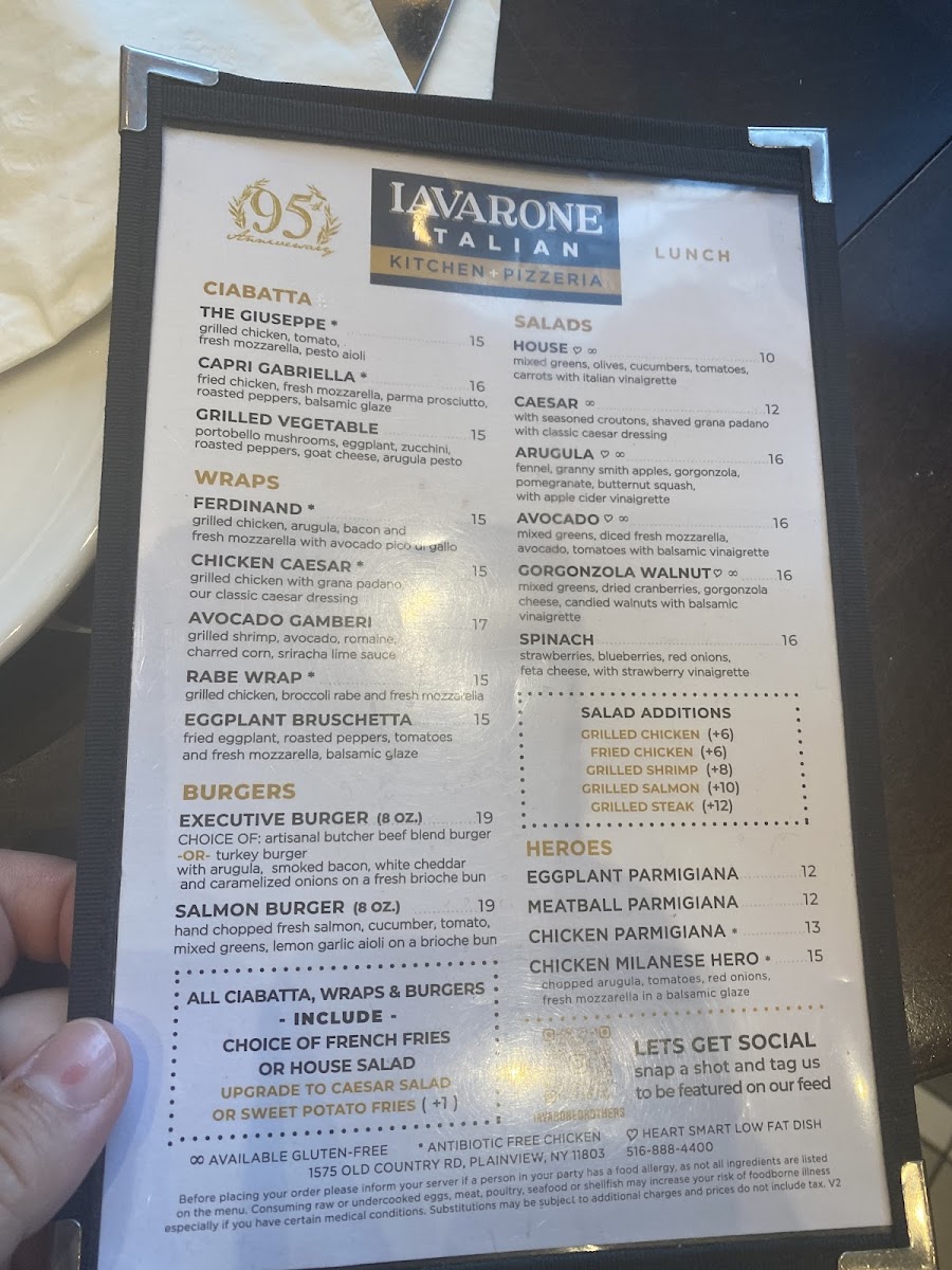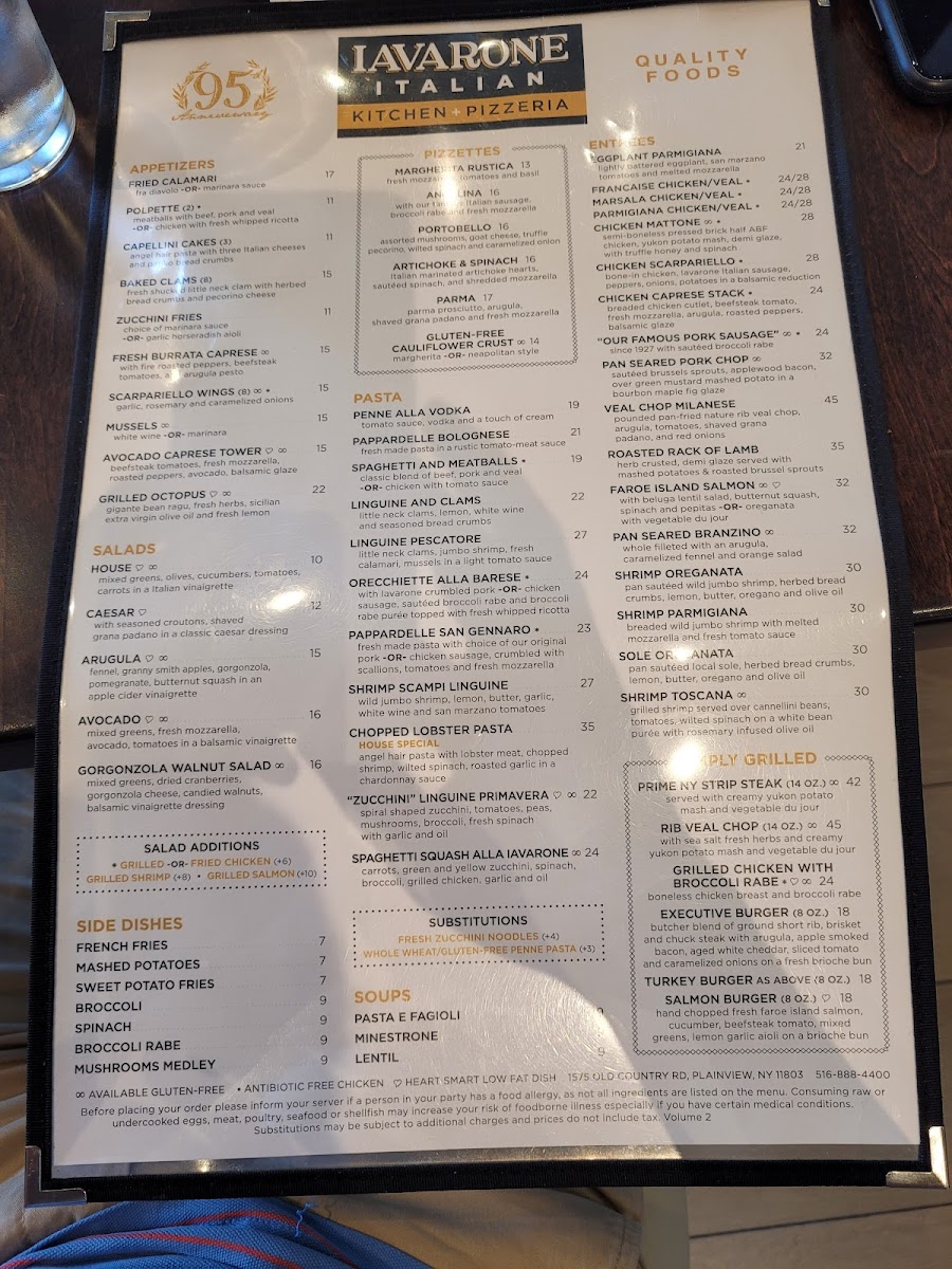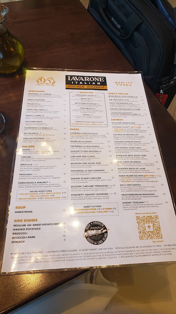 Welcome to Iavarone Italian Kitchen, located in the heart of Plainview, NY. This culinary gem offers an inviting mix of traditional Italian flavors and modern dining experiences. Their lunch menu showcases an array of delectable options, from the Neapolitan Pie to the savory Rigatoni & Short Ribs, each dish prepared with fresh ingredients that shine with authentic Italian flair.